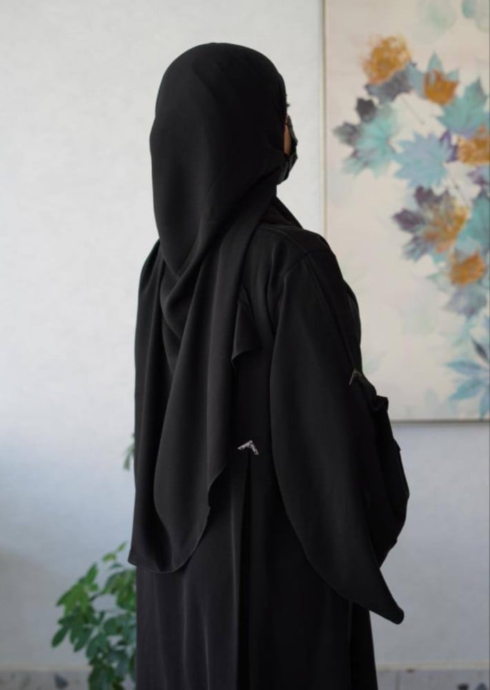 نقاب اسلامي طويل بخيط مائل صمم من قماش كوري يربط من الخلف