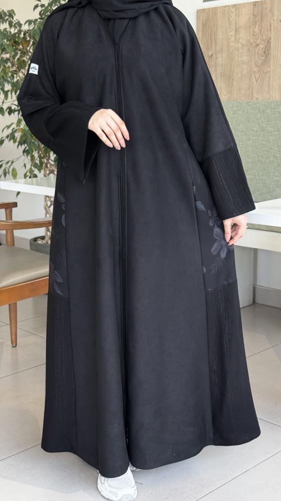 القماش شامواه ناعم ودافي وسواد فاحم وفخم بتصميم انيق ومميز شتوي